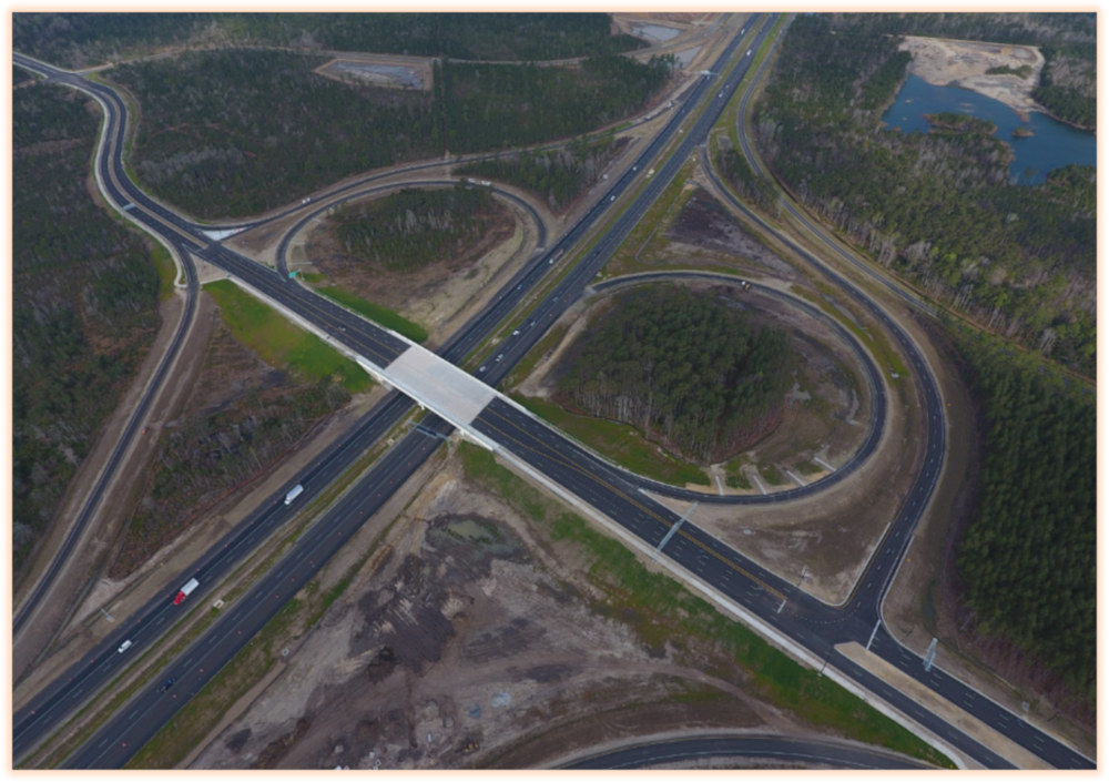 • 8 miles of new roadway & frontage road connections and auxiliary lanes for connectivity to local road network
