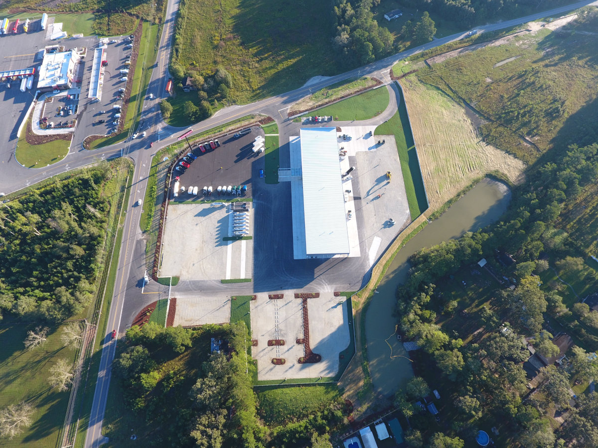 • Site clearing and grubbing, pond excavation, storm drainage and underground utility installation, site grading and stone base placement, asphalt and concrete pavement, and final striping and signage for the facility’s parking lots